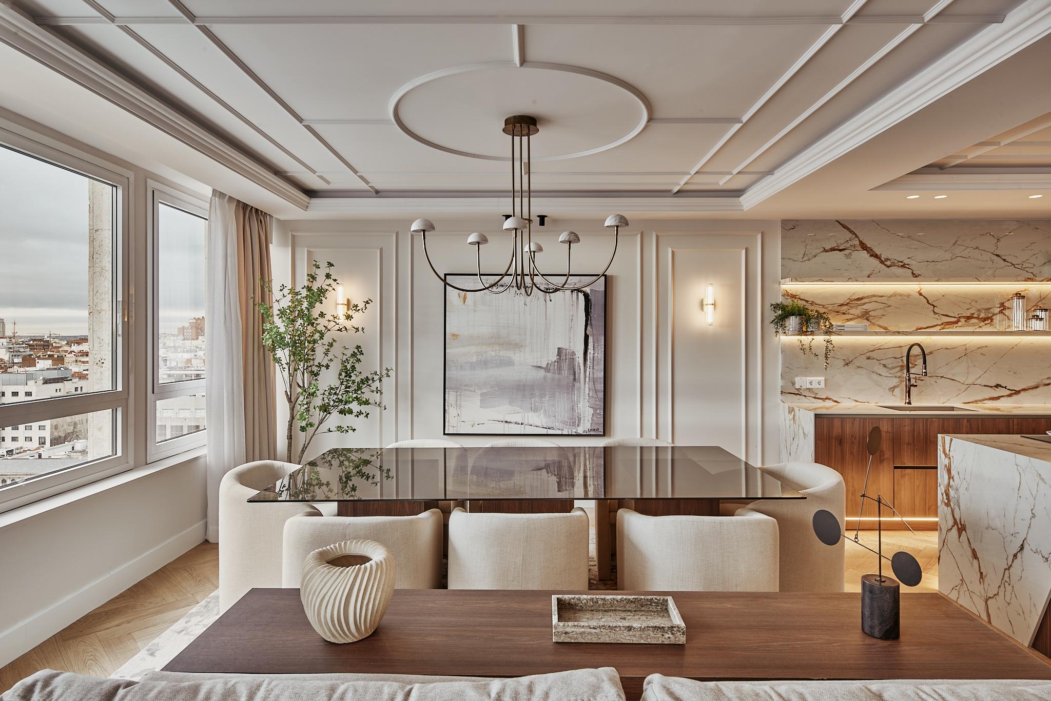 Ubicado en María de Molina 1, en pleno El Viso, Verum se despliega a través de espacios amplios y ordenados donde la luz actúa como elemento estructural. La vivienda alberga cinco dormitorios dobles, cinco baños, una cocina abierta, zona de café y chimenea, configurando un conjunto coherente donde cada decisión responde a una lógica de equilibrio, precisión y calidad.