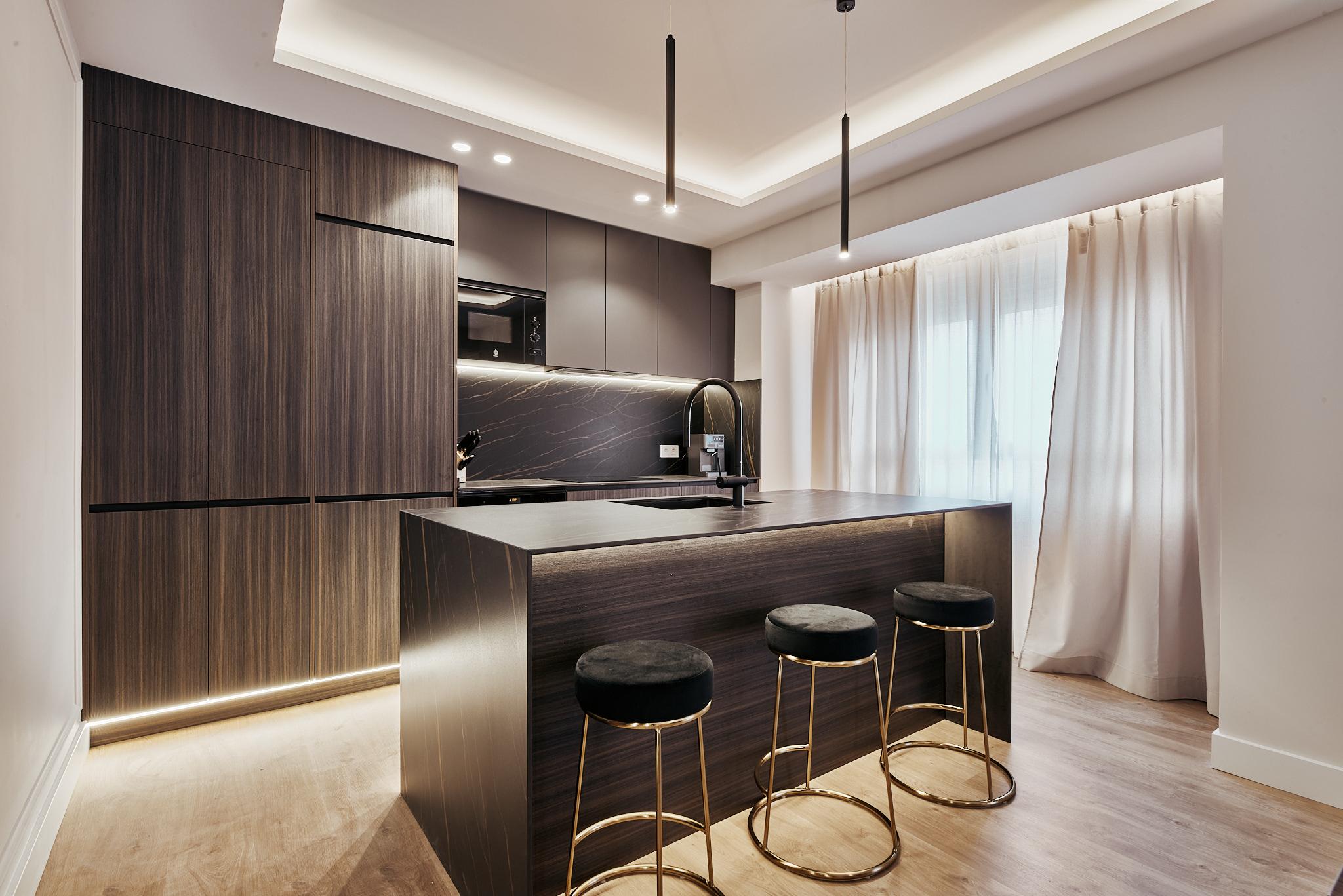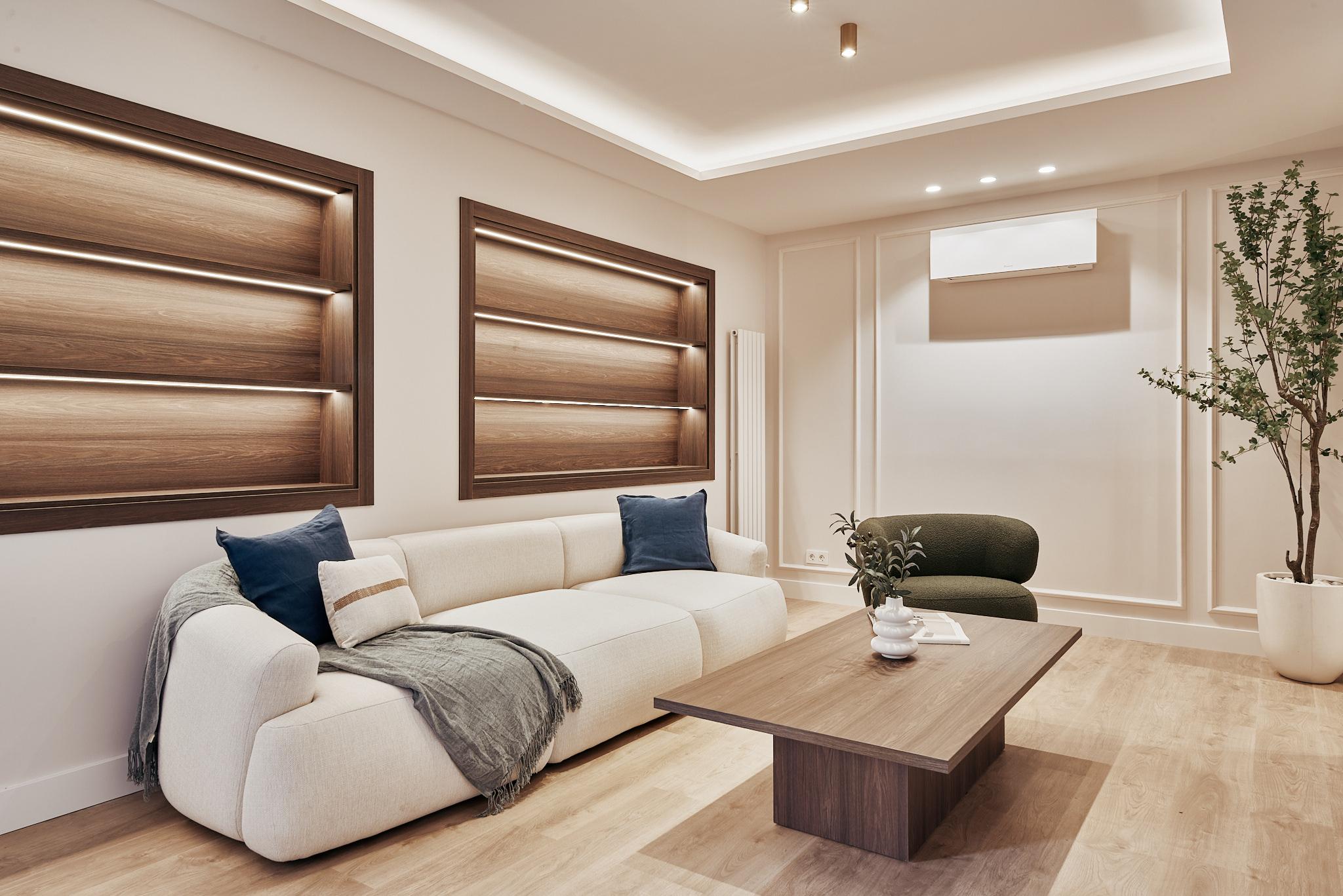 La intervención pone el acento en la calidad del espacio y el bienestar cotidiano: luz natural filtrada por el patio de manzana, materiales de alta gama, proporciones cuidadas y un lenguaje estético atemporal que huye de lo superfluo. El resultado es una vivienda silenciosa, ordenada y acogedora, pensada para durar en el tiempo.