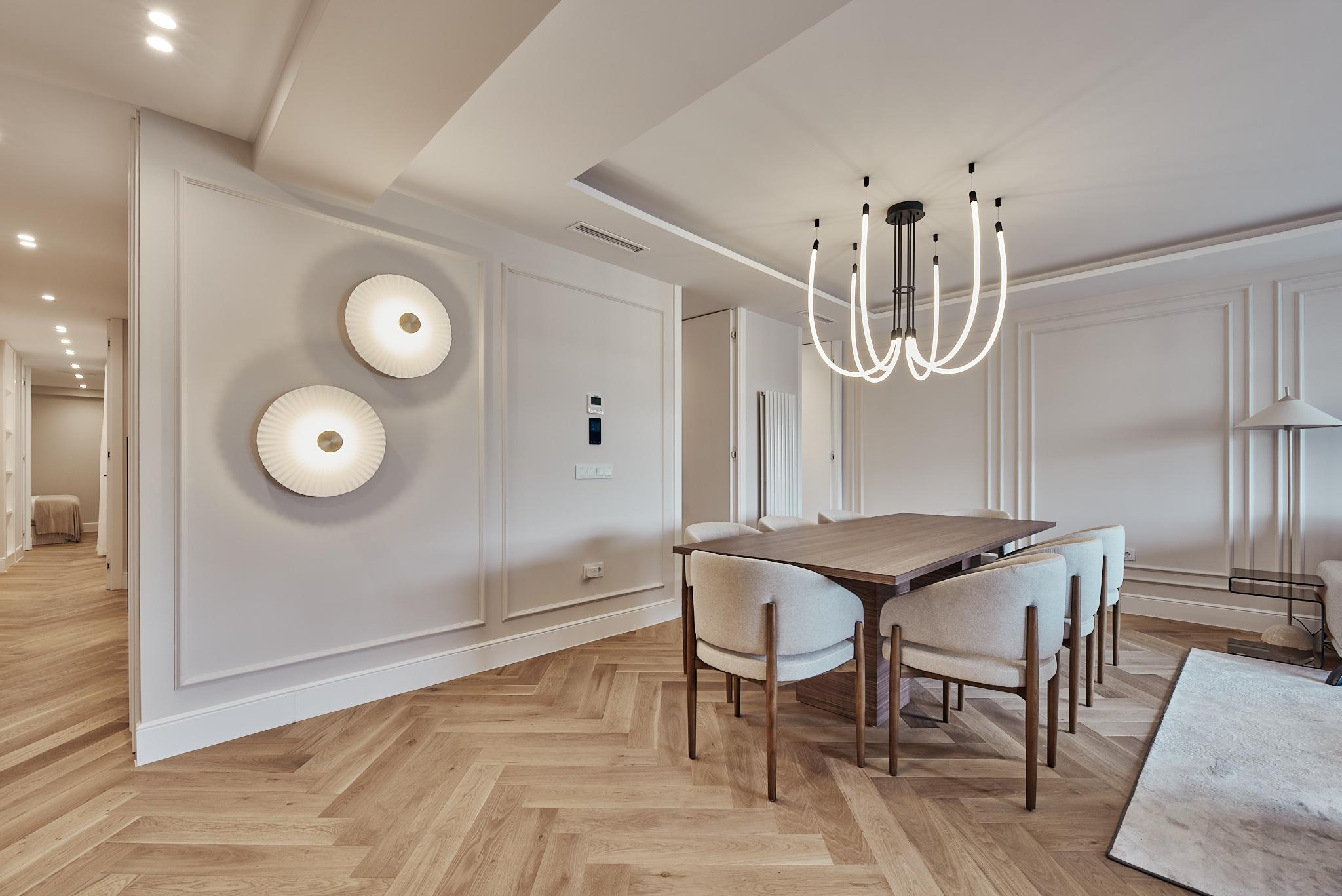 En una finca clásica de 1966 con ascensor, se presenta esta exclusiva vivienda reformada situada en la representativa calle María de Molina, uno de los ejes más emblemáticos y consolidados del Barrio de Salamanca.