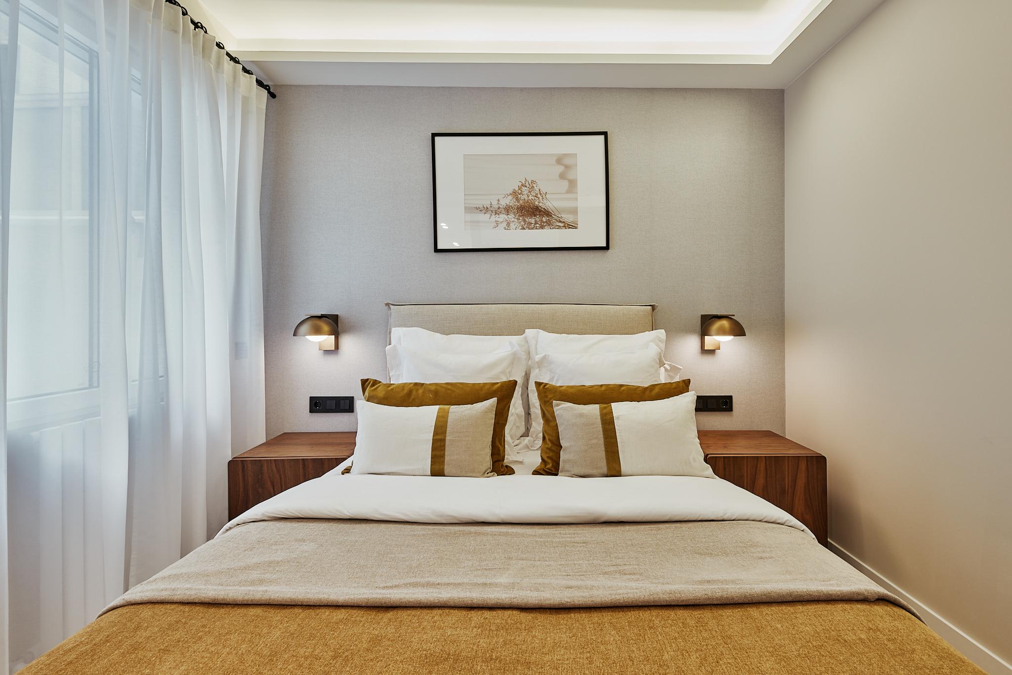 La reforma apuesta por una estética atemporal, con materiales de calidad, tonos suaves y una iluminación cálida que refuerza la sensación de hogar. Al tratarse de una vivienda interior a patio de manzana, el resultado es especialmente tranquilo, con una atmósfera reposada y confortable. Dispone de calefacción central, aire acondicionado por split y ascensor, cubriendo todas las necesidades de la vida urbana actual.