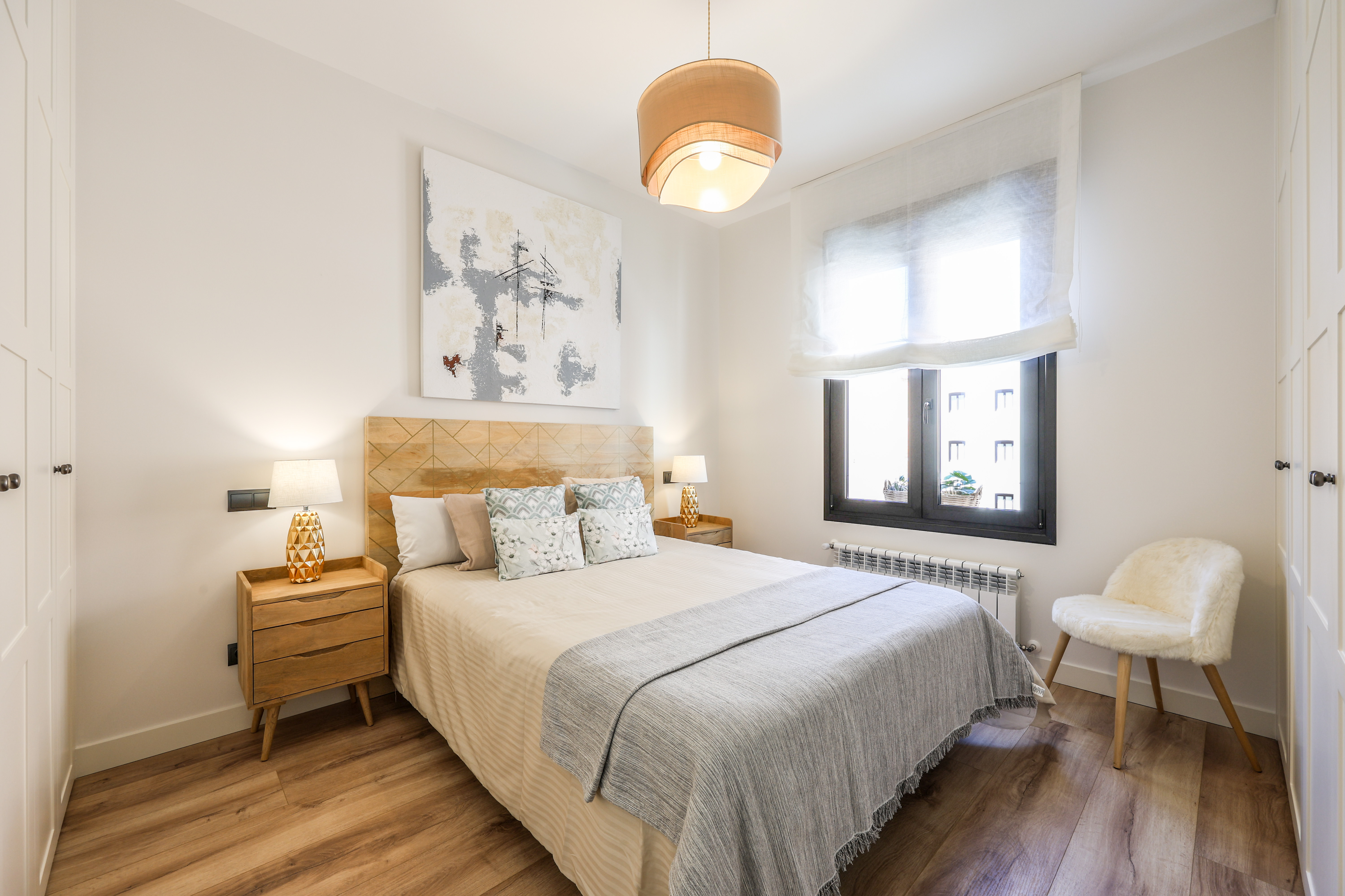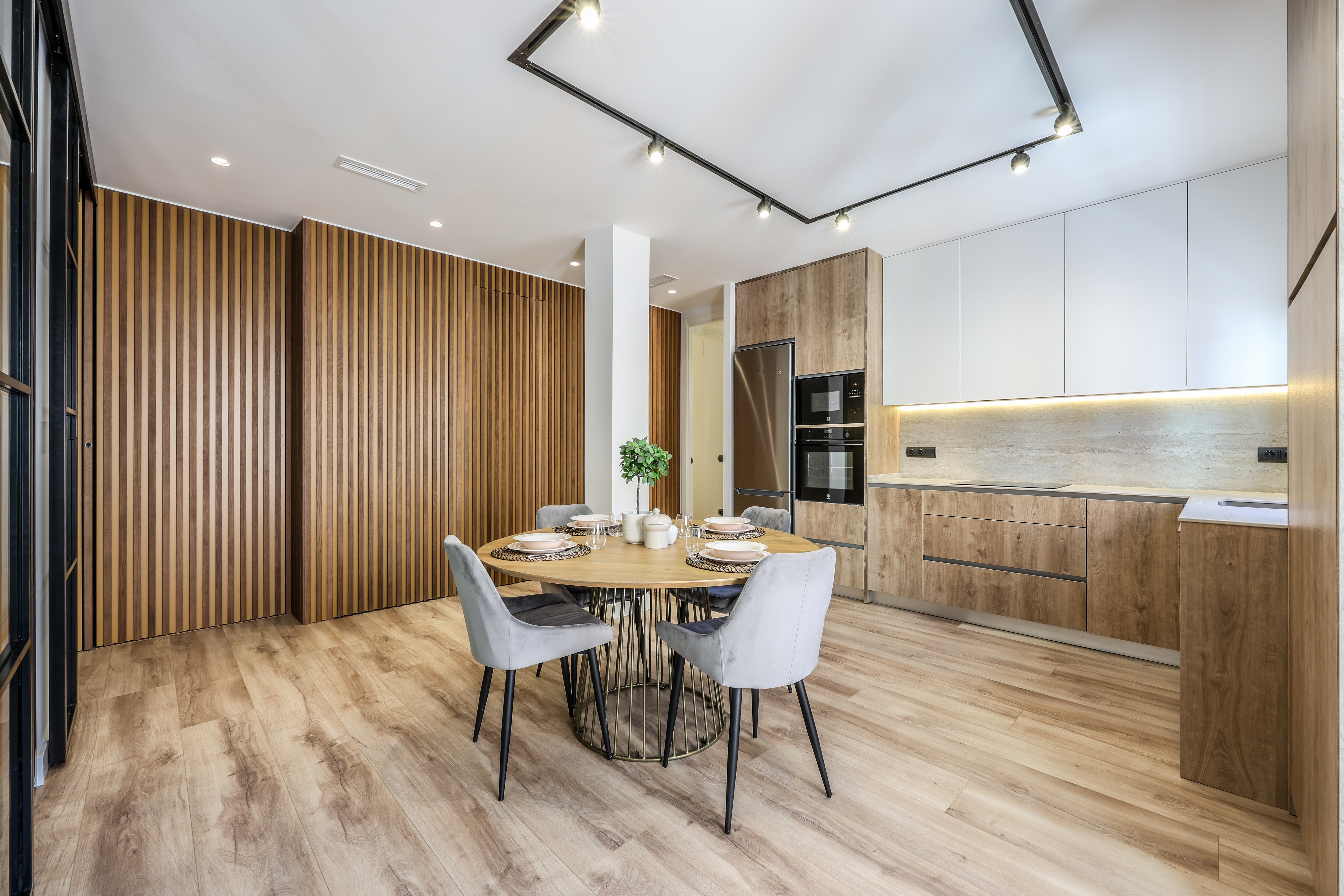 Con 110 m², esta vivienda exterior en cuarta planta ofrece una distribución equilibrada y contemporánea, diseñada para maximizar luz y funcionalidad. El salón-comedor, amplio y luminoso, se conecta con una terraza privada, aportando desahogo y una agradable relación con el exterior. La cocina abierta, totalmente equipada con electrodomésticos integrados se incorpora de forma natural en el espacio, separada mediante un elegante cerramiento acristalado de diseño.