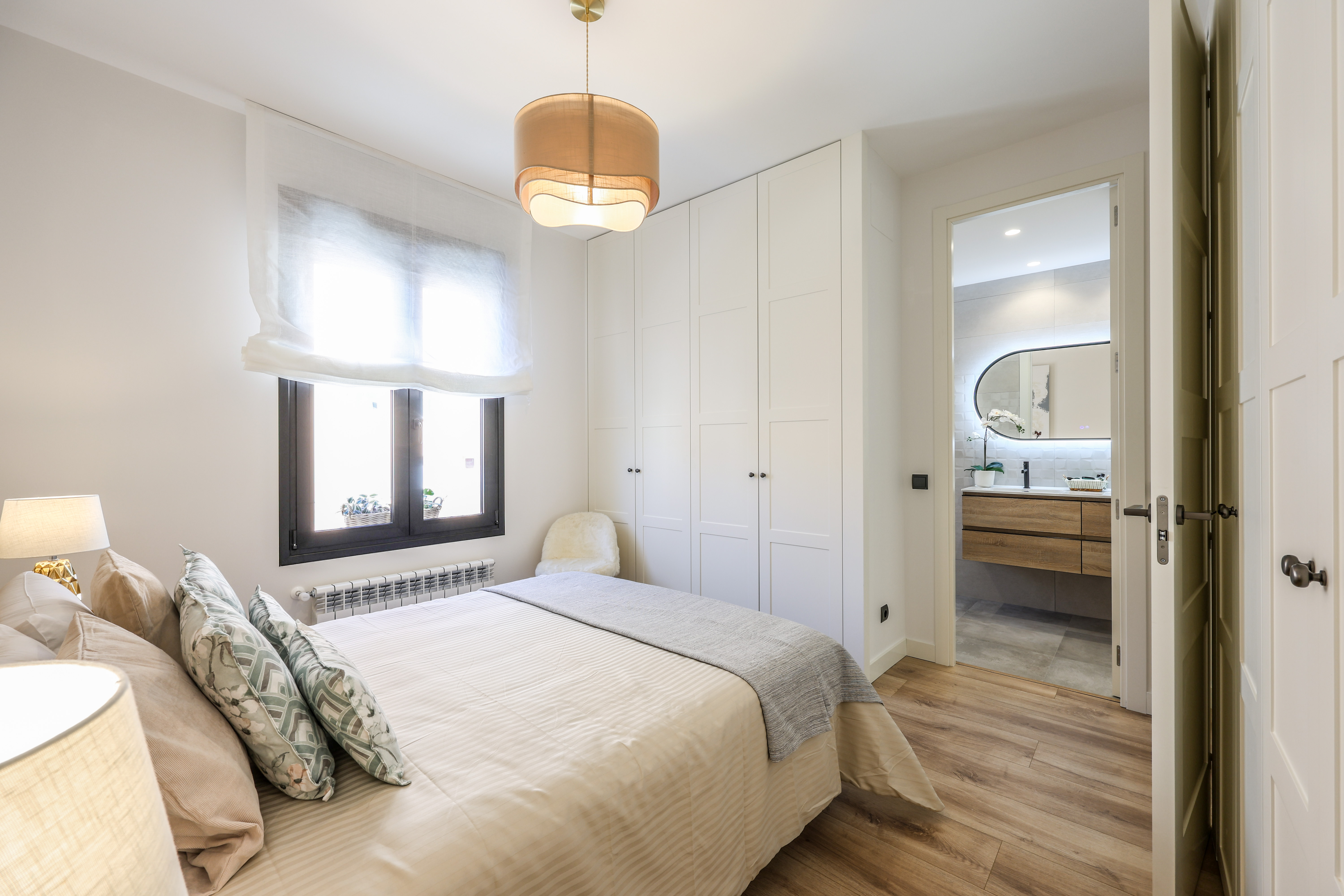 La vivienda ha sido reformada integralmente con altas calidades, incluyendo tarima AC5 formato XXL, carpintería exterior con doble acristalamiento y rotura de puente térmico, calefacción central y aire acondicionado por conductos con bomba de calor y control WiFi.